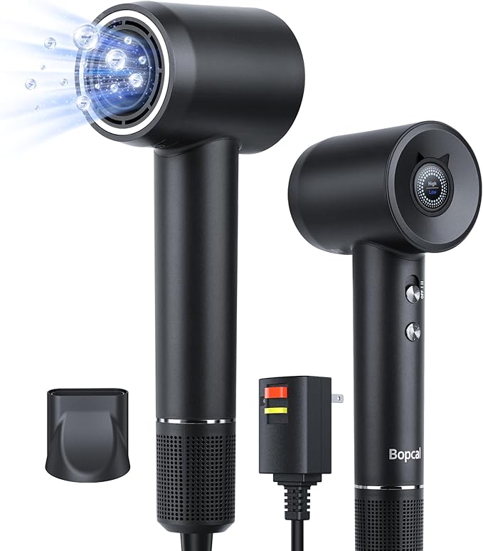 The Bopcal Ionic Blow Dryer features some impressive specs, starting with its high-speed motor, capable of an incredible 160,000 RPM. This high velocity allows for a super-fast drying time, which is perfect for busy mornings or anyone who just doesn’t have the time for a lengthy hair-drying routine. The design is sleek, compact, and weighs in at just under a pound, making it a great option for anyone on the go—whether you’re traveling for business, vacation, or just moving around your home.