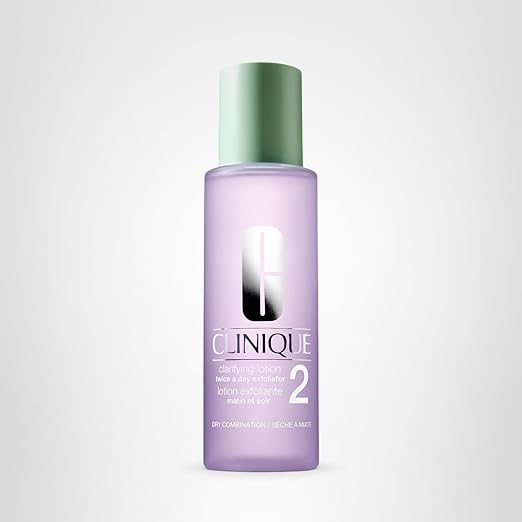 Clinique’s 3-Step Clarifying Lotion is a liquid exfoliator designed specifically for dry to combination skin types. It’s formulated to remove dirt and excess oil, offering a fresh, smooth finish. What’s interesting about this product is its active ingredient, witch hazel, known for its soothing and astringent properties. The formula promises to sweep away debris and leave your skin glowing within seconds, improving your skin’s radiance and texture. It’s part of Clinique’s 3-Step system, which is meant to cleanse, exfoliate, and moisturize.