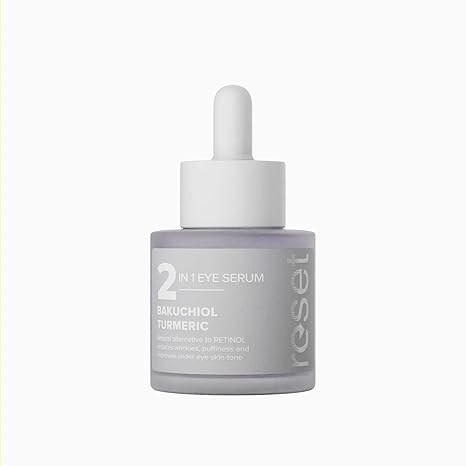 The Reset 2 in 1 Eye Serum comes in a compact 1-ounce bottle, which is a pretty standard size for eye serums, and it’s designed for sensitive skin. This serum is packed with Bakuchiol, derived from the Ayurvedic Babchi plant, which is known to have similar benefits to retinol but without the irritation. The Turmeric in the formula adds an extra layer of calming benefits—perfect for reducing puffiness and combating dark circles. Both ingredients are well known for their skin-soothing, brightening, and anti-aging properties.