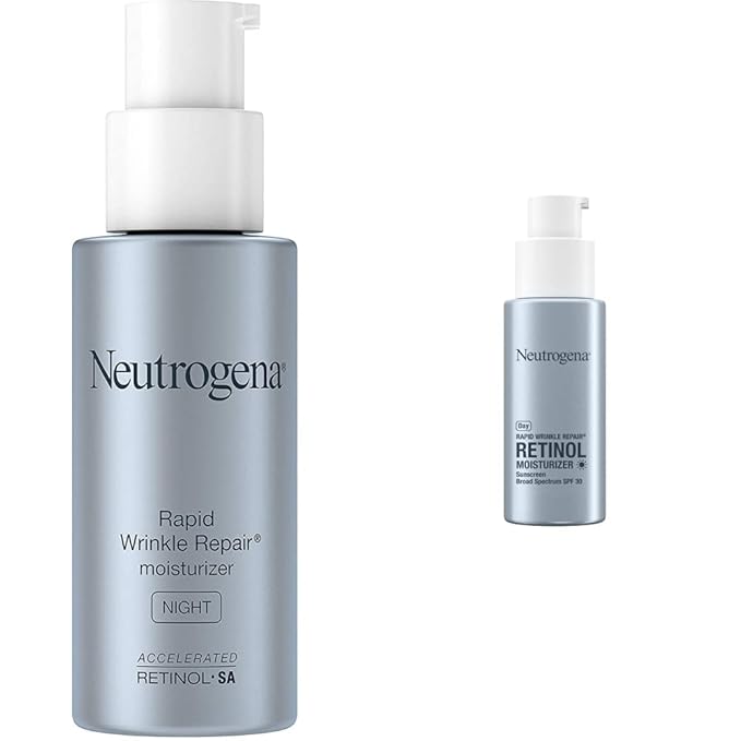 Let’s start with the basics. Neutrogena is a brand we all recognize for creating reliable skincare products, and their Rapid Wrinkle Repair line is no different. These two moisturizers, the day cream with SPF 30 and the night cream, are designed to target fine lines and wrinkles with a powerful combination of retinol and hyaluronic acid. The day moisturizer has a broad-spectrum SPF 30, offering sun protection while treating signs of aging, while the night cream works overnight to reduce wrinkles and dark spots with its accelerated retinol formula.