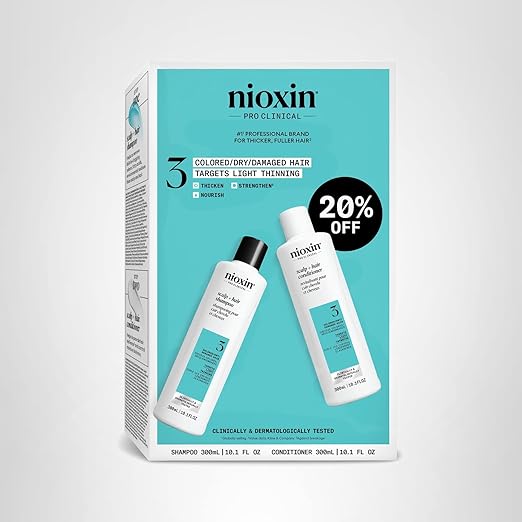 Today, we’re reviewing the Nioxin Duo Kit, which includes the Scalp & Hair Thickening Shampoo and Conditioner. This system is specifically designed for those with colored, dry, and damaged hair who are dealing with light thinning. The shampoo and conditioner come in 10.1 fl oz bottles and promise to provide fuller, thicker hair with regular use. But does it deliver on that promise? Let’s find out.