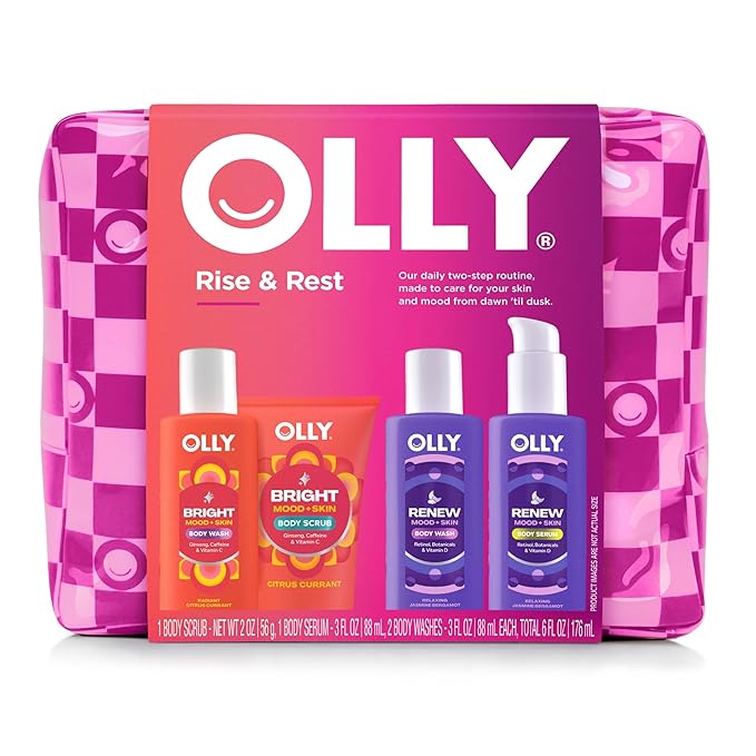This kit includes the BRIGHT body wash and scrub for daytime, formulated with the OLLY Vitamin Complex, ginseng, caffeine, and vitamin C. The idea is to give your skin a boost while invigorating your senses with a Radiant Citrus Currant scent. Then there’s the RENEW evening set, which includes a nourishing body wash and a lightweight serum infused with the same vitamin complex, retinol, botanicals, and vitamin D, meant to help you relax with a soothing Jasmine Bergamot fragrance. Everything is clinically formulated, and the scents have even been developed with neuroscientists to support your mood at the right time of day.
