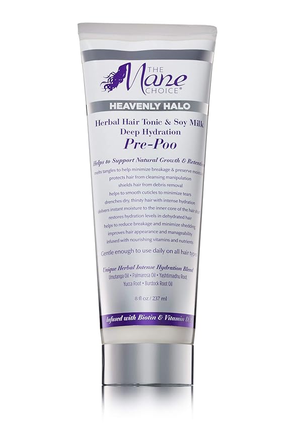 Today, we’re diving into The Mane Choice Heavenly Halo Herbal Hair Tonic & Soy Milk Deep Hydration Pre-Poo. This 8-ounce bottle promises to hydrate, soften, and minimize moisture loss, especially for coily, wavy, and curly hair textures. But, does it live up to the hype? Keep watching as I share my full thoughts on this pre-shampoo treatment.