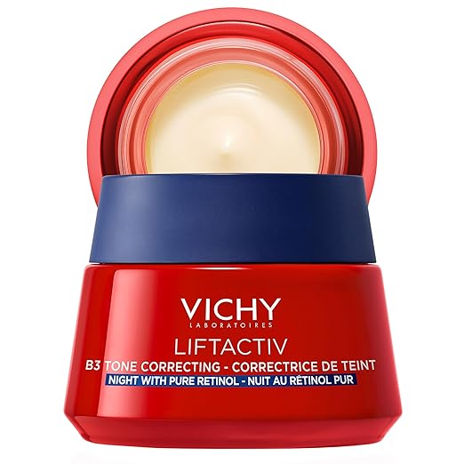 The VICHY Liftactiv B3 Tone Correcting Night Cream combines two potent ingredients—0.15% Pure Retinol and 4% Niacinamide. It’s designed to improve skin’s texture, even out skin tone, and target stubborn dark spots and wrinkles. With a formula crafted to minimize irritation, this cream is geared towards providing anti-aging benefits without the harsh side effects that often come with potent actives like Retinol.